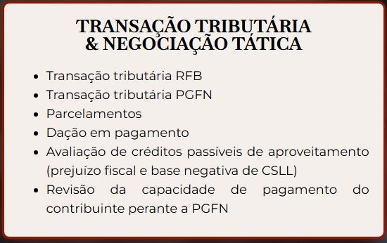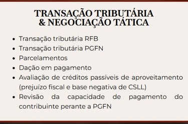 Estruturar a operação de forma economicamente eficiente e conforme a Lei, em negociação e recuperação tributária;